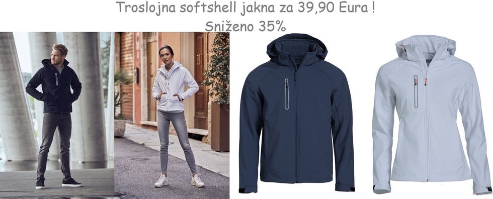 Moderna troslojna softshell jakna, muškog i ženskog ( strukiranog ) kroja. Kapuljača se može skinutu. Dva džepa sa strane i džep na prsima sa reflektirajućim obrubom.